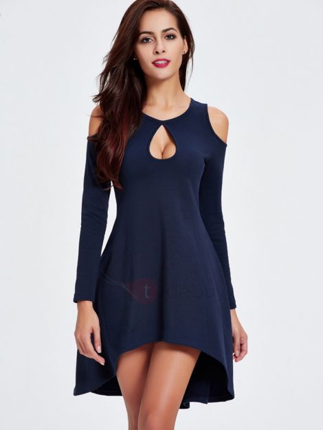 肩带长袖高低日礼服